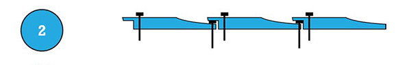 Shiplap - Each board overlaps the next and requires two screws to hold it in place.